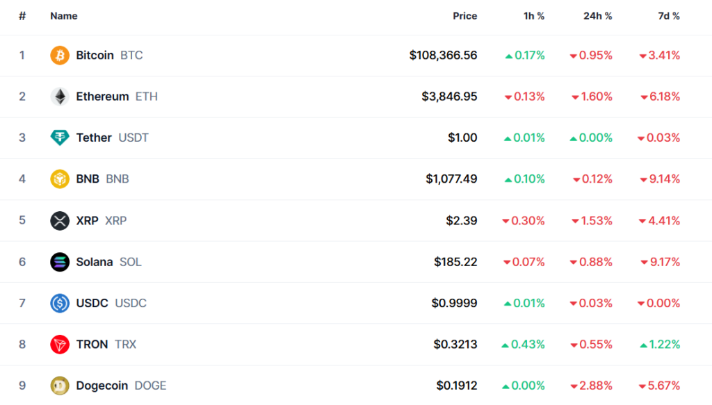 10월 22일 암호화폐 시장은 전반적인 약세 흐름 속에 깊은 조정 구간에 들어섰다. 비트코인은 11만 달러 아래로 하락하며 10만 8천 달러 부근에서 불안한 횡보세를 보였고, 이더리움과 리플 역시 주요 지지선을 시험 중이다.
