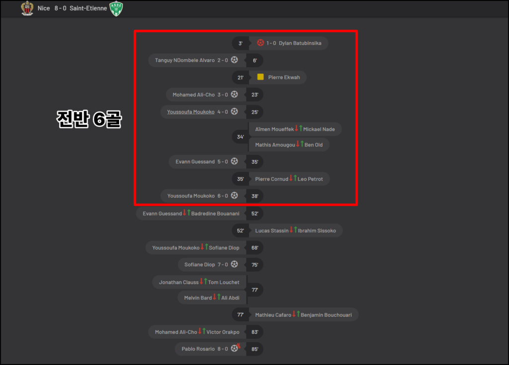 ⚽ 실제 경기 예시 – 2024/25 리그앙 5R OGC 니스 vs AS 생테티엔 (8-0)