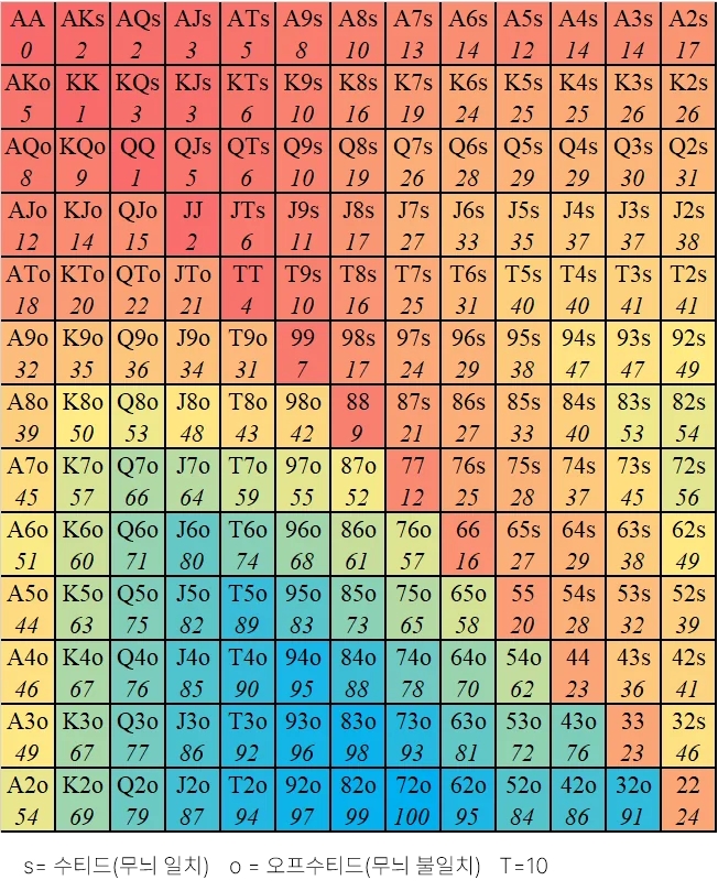 특히 벳 온 포커는 블러핑이나 포지션(베팅 순서) 개념이 존재하지 않기 때문에, 포켓(두 카드의 숫자가 같은 경우), 수티드(두 카드의 무늬가 같은 경우) 등 기본적인 핸드 랭킹만 파악해도 충분히 실전에서 활용할 수 있습니다.