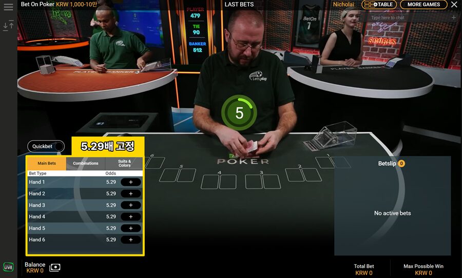 벳 온 포커의 노 카드 베팅 배당은 5.29배로, TvBet 포커의 노 카드 베팅 배당보다 약 0.9배 높게 설정되어 있습니다.