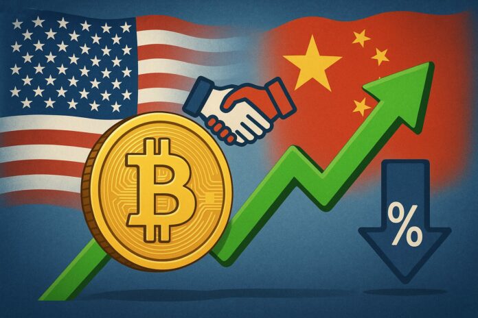주말 동안 말레이시아에서 열린 미·중 실무 협의에서 양국이 관세 인상과 희토류 수출 제한을 유예하는 ‘무역 프레임워크 합의안’을 도출했다. 스콧 베슨트 미 재무장관은 “협상을 통해 실질적 진전을 이뤘다”고 밝혔고, 허리펑 중국 부총리는 “상호 이익과 윈윈 관계가 핵심”이라고 강조했다. 이 소식이 전해지자 비트코인은 단숨에 11만4000달러 저항선을 돌파해 11만5579달러까지 치솟았다.