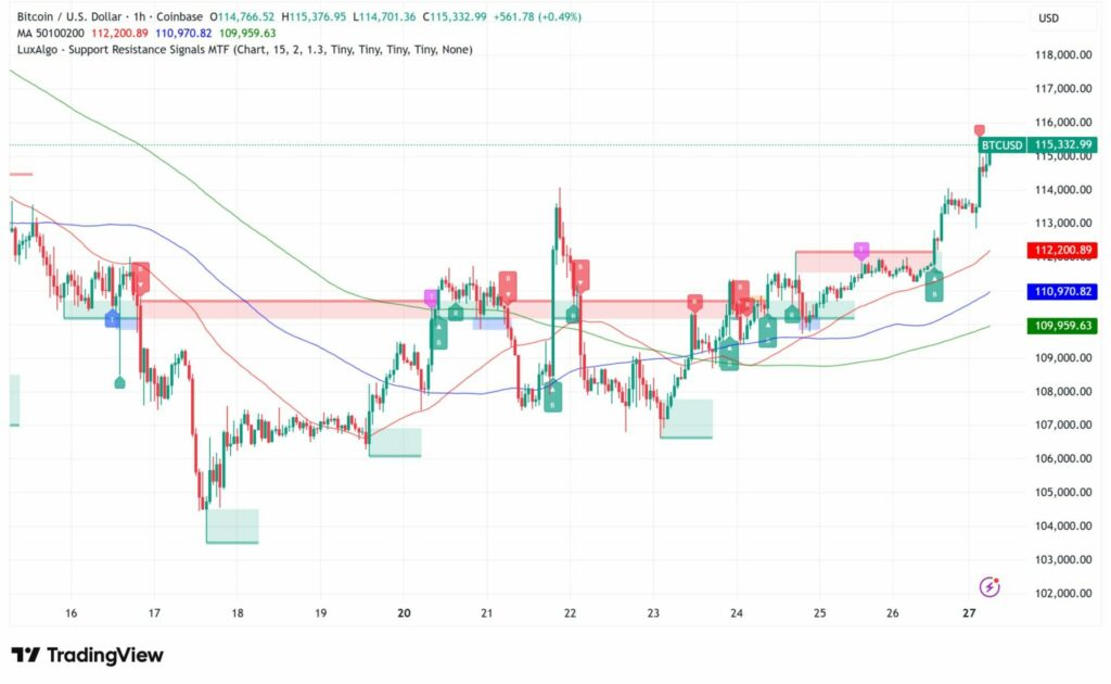 비트코인(BTC)이 2주 만에 11만5000달러를 돌파하며 글로벌 디지털자산 시장이 다시 활기를 되찾고 있다. 미·중 무역협상 진전과 미국 연방준비제도(Fed)의 금리 인하 기대감이 결합되며 시장 전반의 위험자산 선호심리가 급격히 회복된 모습이다.