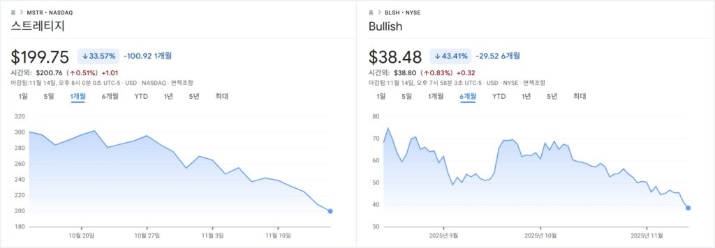 솔라나·리플 등 주요 알트코인이 1~4% 하락했고, 스트래티지와 불리시 같은 비트코인 보유·거래 기업 주가도 4~6% 떨어졌다. 다만 몇몇 채굴기업은 실적 기대감으로 제한적 반등을 보이며 혼조세를 나타냈다.