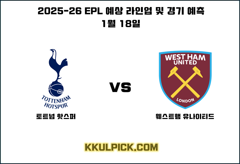 이 포스팅은 1월 18일 (한국시간)에 펼쳐지는 2025-26 EPL 토트넘 홋스퍼 FC와 웨스트햄 유나이티드 FC 간의 맞대결 경기를 분석하는 내용을 포함하고 있습니다.