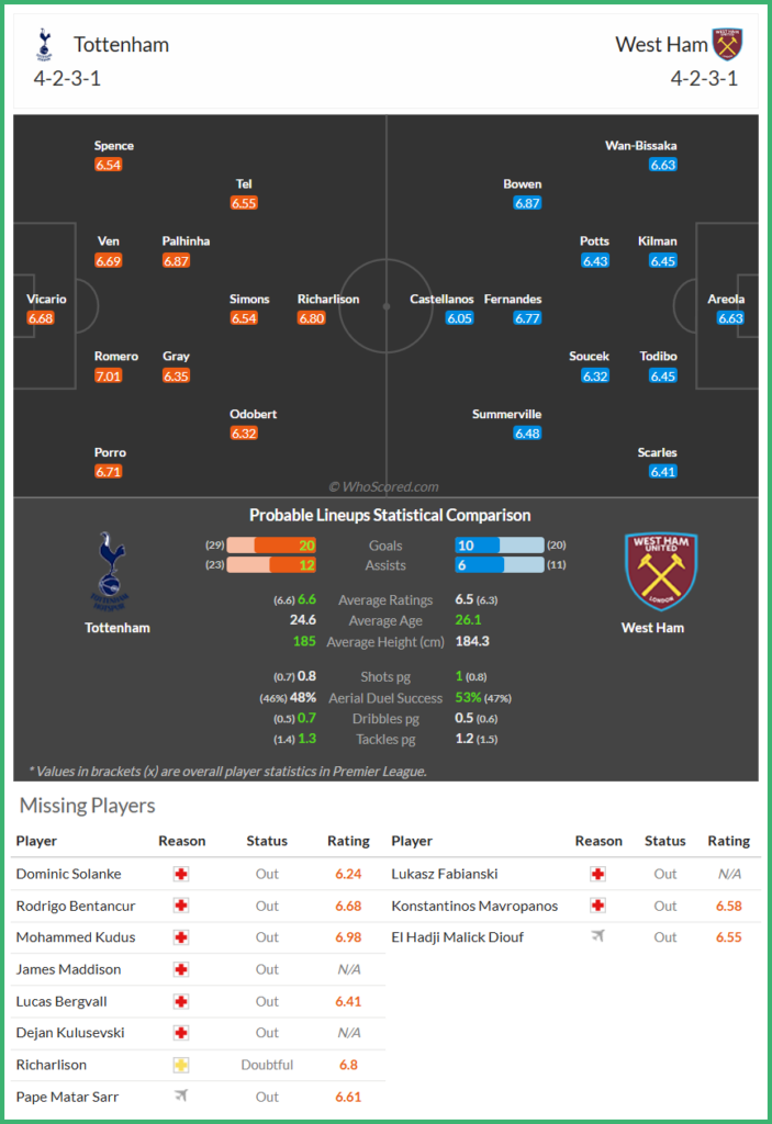 - 예상 스코어 : [토트넘 핫스퍼 2 – 0 웨스트햄 유나이티드]