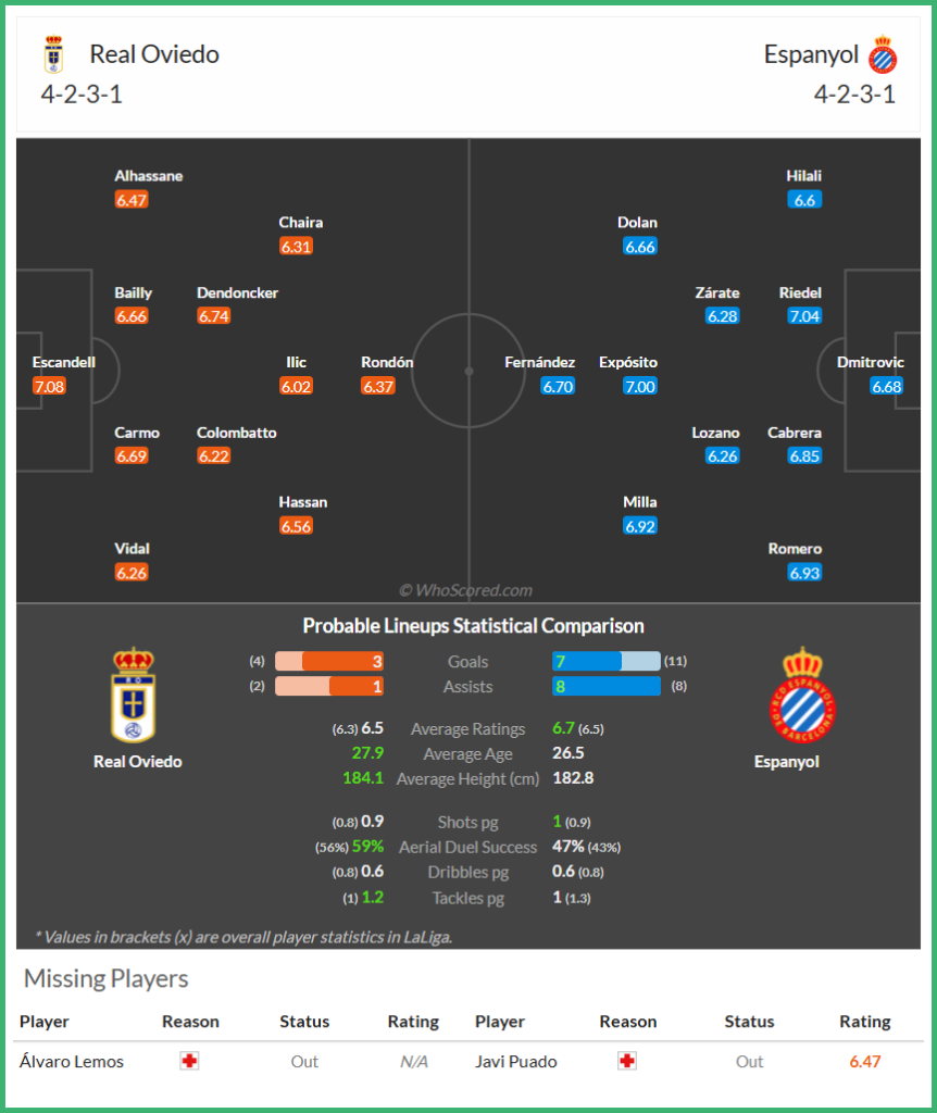 - 예상 스코어 : [레알 오비에도 1 – 1 RCD 에스파뇰]