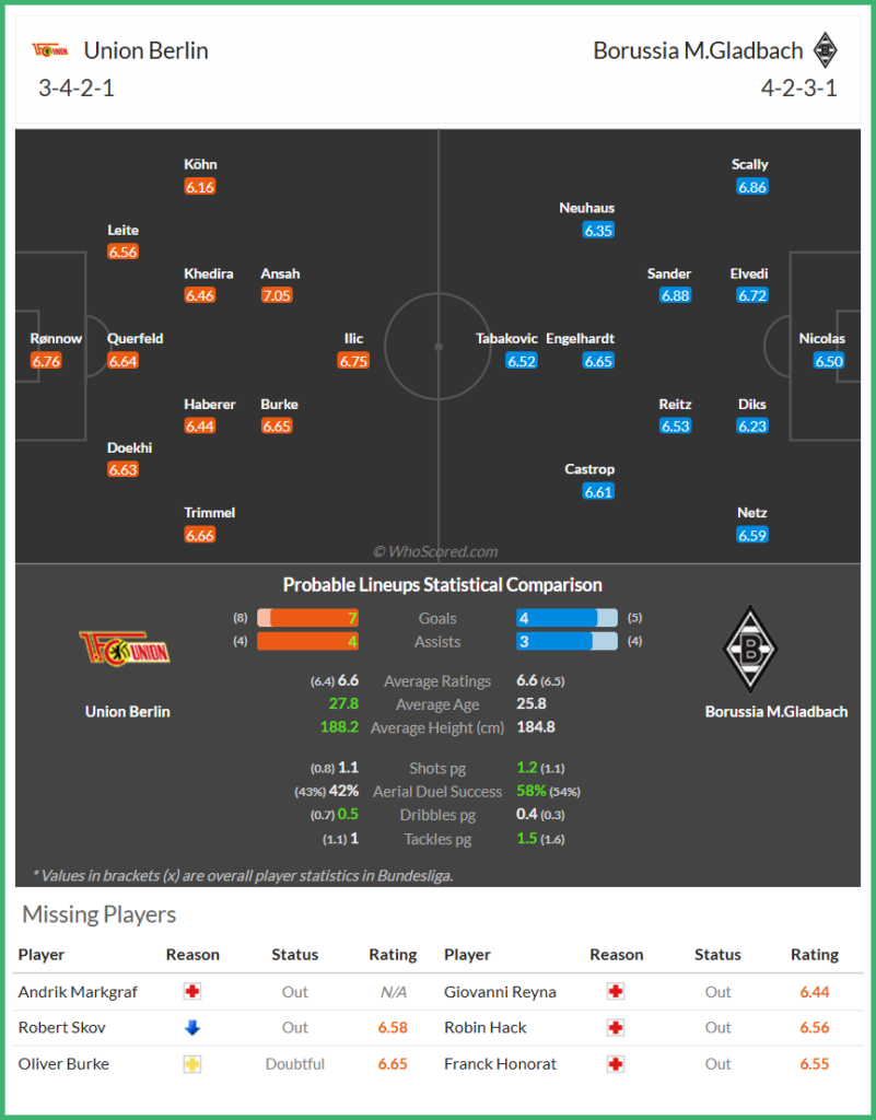 1. FC 우니온 베를린 | 보루시아 묀헨글라트바흐 | |