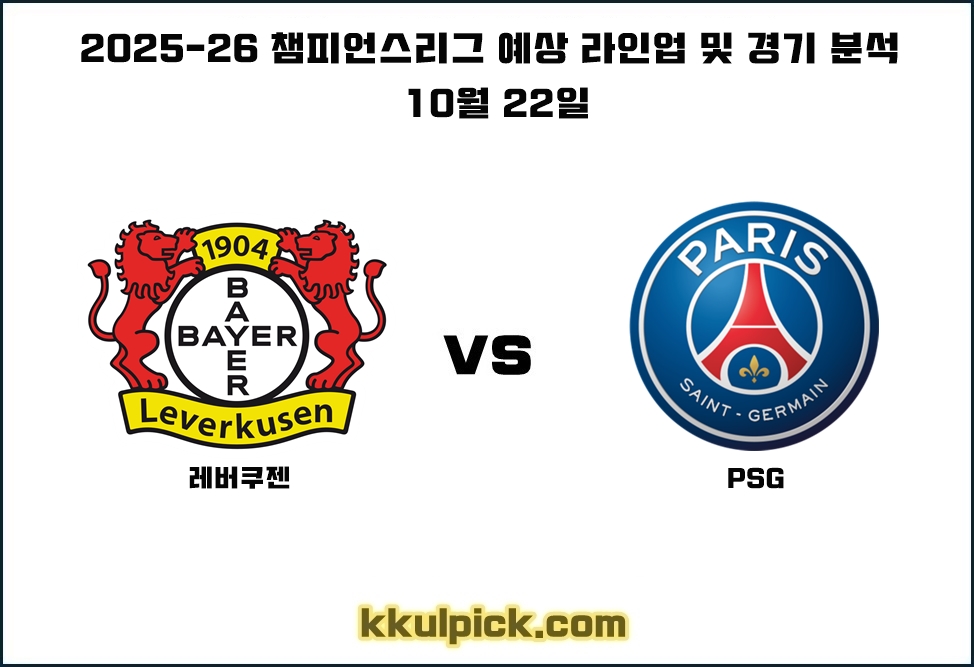 이 포스팅은 10월 22일 (한국시간)에 펼쳐지는 2025-26 UEFA 챔피언스 리그 리그 페이즈 바이어 04 레버쿠젠과 파리 생제르맹 FC 간의 맞대결 경기를 분석하는 내용을 포함하고 있습니다.