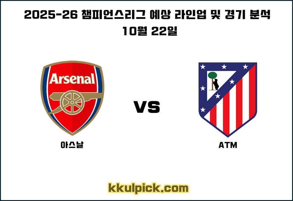 이 포스팅은 10월 22일 (한국시간)에 펼쳐지는 2025-26 UEFA 챔피언스 리그 리그 페이즈 아스날 FC와 아틀레티코 마드리드 간의 맞대결 경기를 분석하는 내용을 포함하고 있습니다.