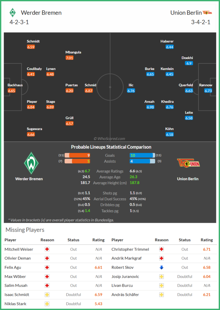 | SV 베르더 브레멘 | 1. FC 우니온 베를린 | |