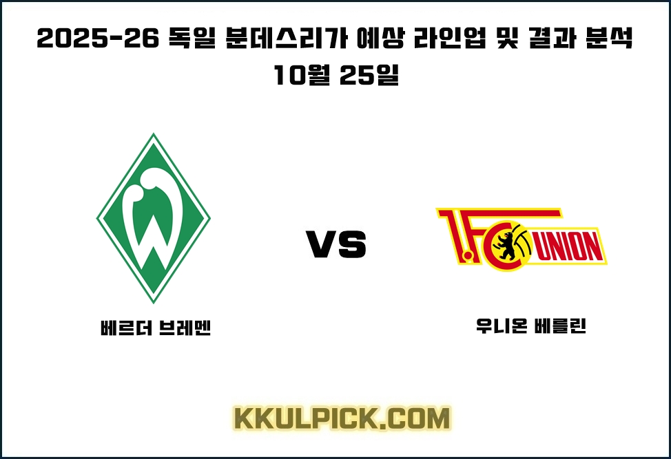 이 포스팅은 10월 25일 (한국시간)에 펼쳐지는 2025-26 분데스리가 8라운드 SV 베르더 브레멘과 1. FC 우니온 베를린 간의 맞대결 경기를 분석하는 내용을 포함하고 있습니다.