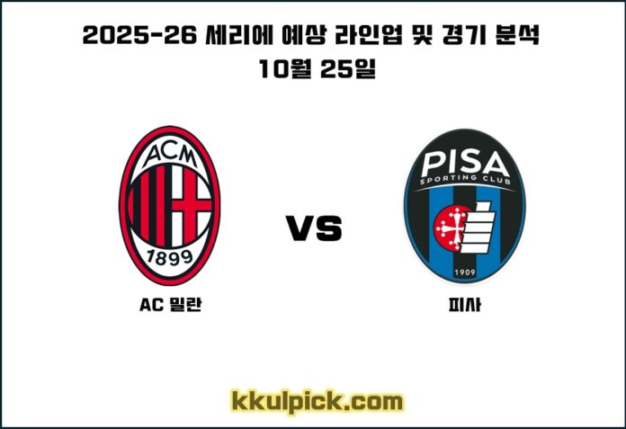 10월 25일 세리에A AC 밀란 피사 SC 예상 라인업 및 AI 결과 분석