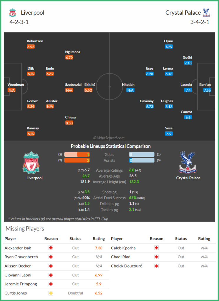 - 예상 스코어 : [리버풀 2 – 2 크리스탈 팰리스]