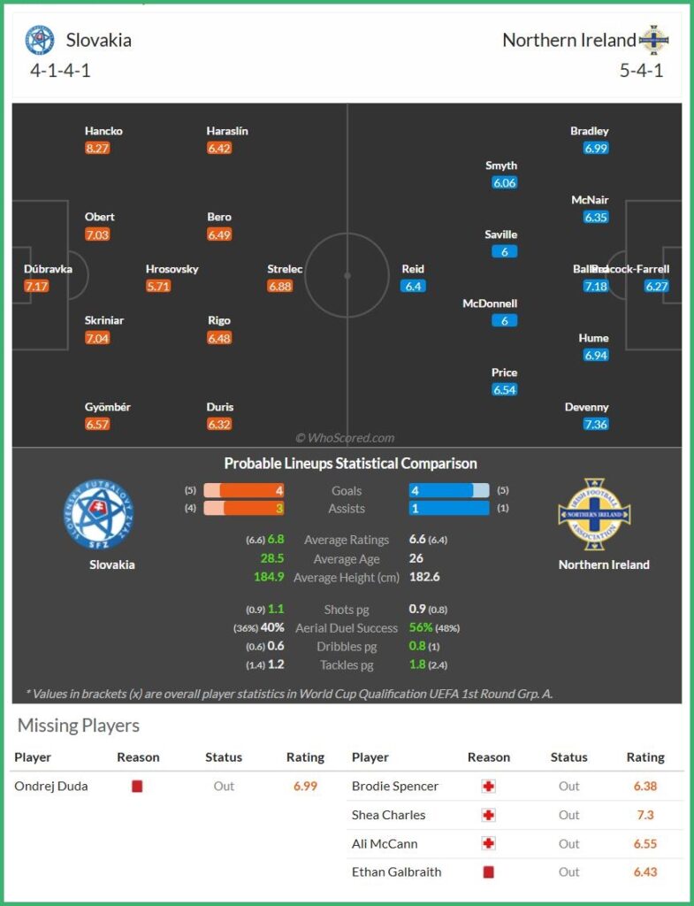 | 슬로바키아 국가대표팀 | 북아일랜드 국가대표팀 | |
