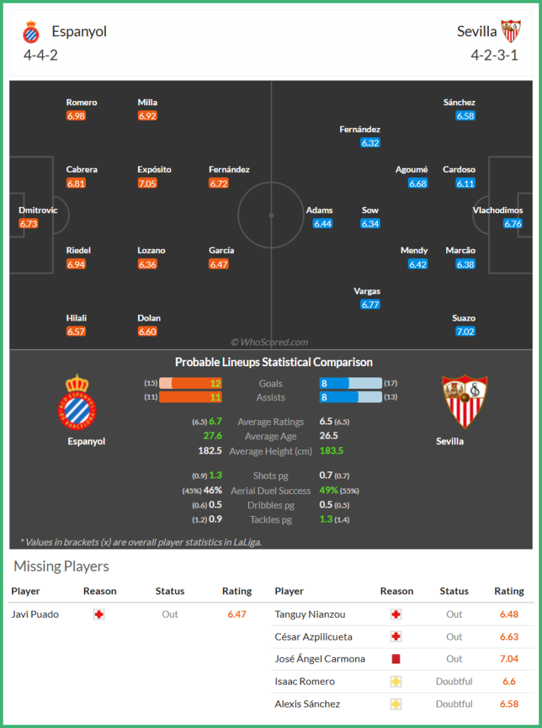 - 예상 스코어 : [에스파뇰 1 – 2 세비야]