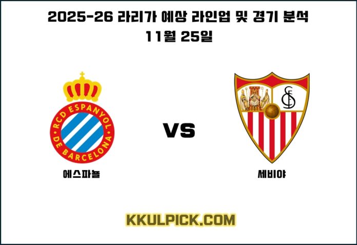 이 포스팅은 11월 25일(한국시간)에 펼쳐지는 2025-26 라리가 13라운드 RCD 에스파뇰과 세비야 FC 간의 맞대결 경기를 분석하는 내용을 포함하고 있습니다.