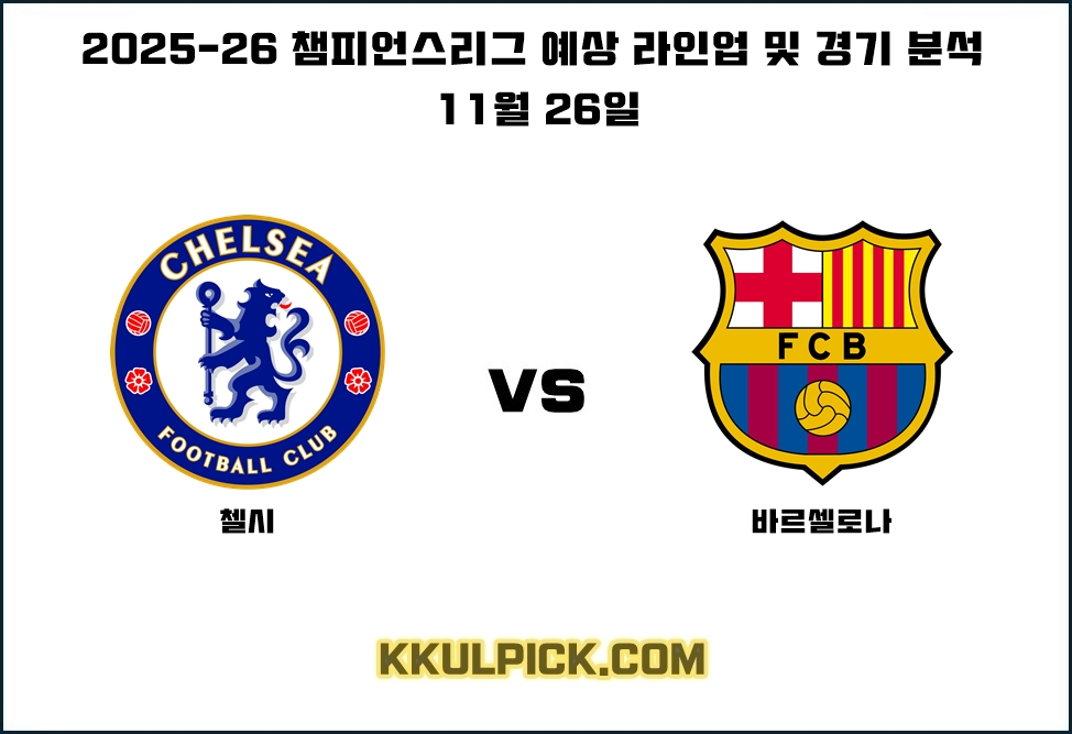 이 포스팅은 11월 26일 (한국시간)에 펼쳐지는 2025-26 챔피언스리그 리그 페이즈 첼시 FC와 FC 바르셀로나 간의 맞대결 경기를 분석하는 내용을 포함하고 있습니다.