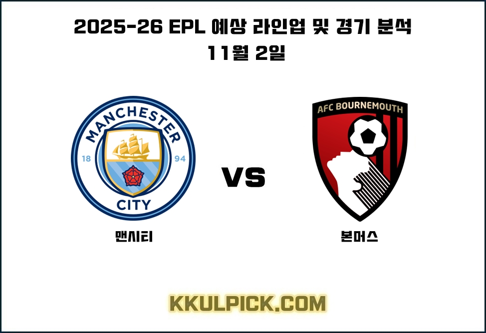 이 포스팅은 11월 3일 (한국시간)에 펼쳐지는 2025-26 EPL 10라운드 맨체스터 시티 FC와 AFC 본머스 간의 맞대결 경기를 분석하는 내용을 포함하고 있습니다.