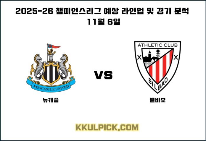 11월 6일 챔피언스리그 뉴캐슬 빌바오 예상 라인업, AI 분석, 결과 예측