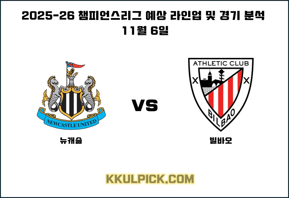 이 포스팅은 11월 6일 (한국시간)에 펼쳐지는 2025-26 챔피언스리그 리그 페이즈 뉴캐슬 유나이티드 FC와 아틀레틱 빌바오 간의 맞대결 경기를 분석하는 내용을 포함하고 있습니다.