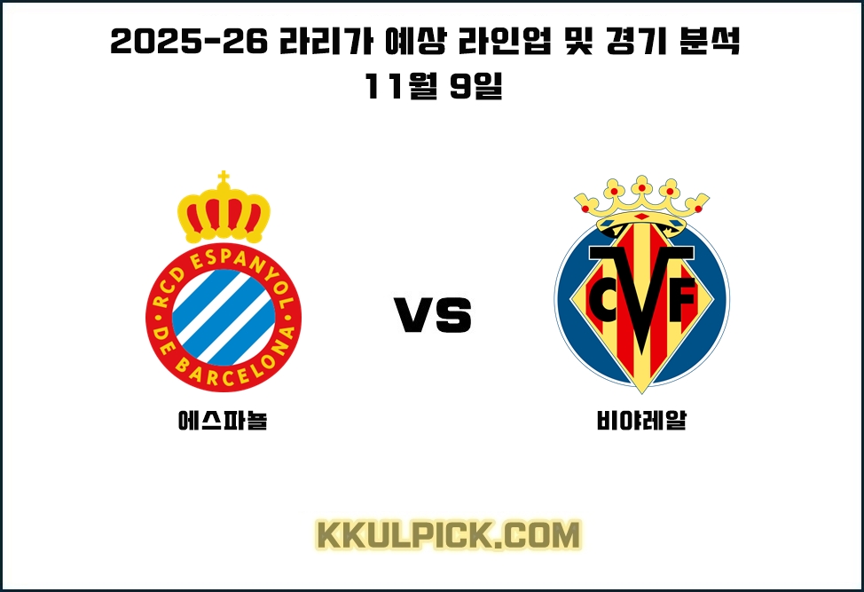 이 포스팅은 11월 9일(한국시간)에 펼쳐지는 2025-26 라리가 12라운드 RCD 에스파뇰과 비야레알 CF 간의 맞대결 경기를 분석하는 내용을 포함하고 있습니다.