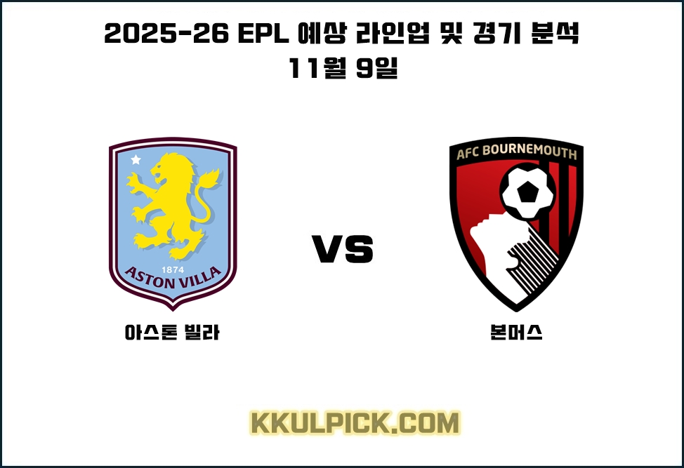 이 포스팅은 11월 9일 (한국시간)에 펼쳐지는 2025-26 EPL 11라운드 아스톤 빌라 FC와 AFC 본머스 간의 맞대결 경기를 분석하는 내용을 포함하고 있습니다.