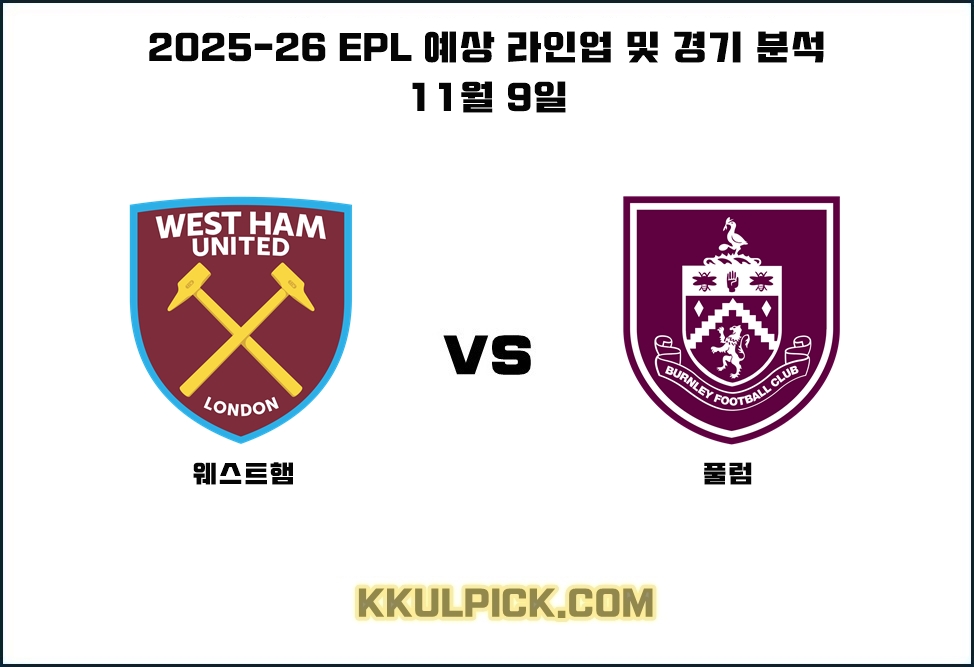 이 포스팅은 11월 8일 (한국시간)에 펼쳐지는 2025-26 EPL 11라운드 웨스트햄 유나이티드 FC와 번리 FC 간의 맞대결 경기를 분석하는 내용을 포함하고 있습니다.