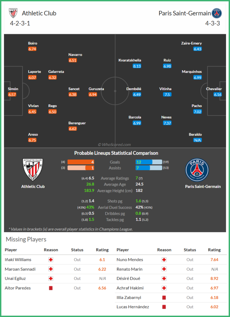 - 예상 스코어 : [아틀레틱 빌바오 1 – 3 PSG]