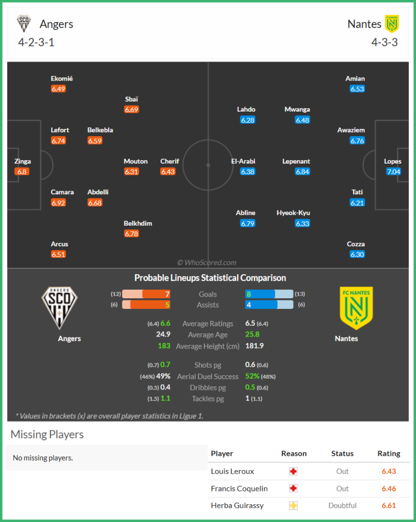 - 예상 스코어 : [앙제 SCO 1 – 0 FC 낭트]
