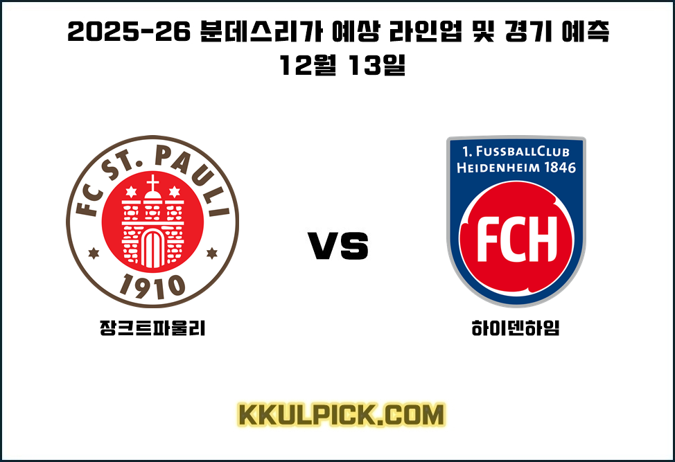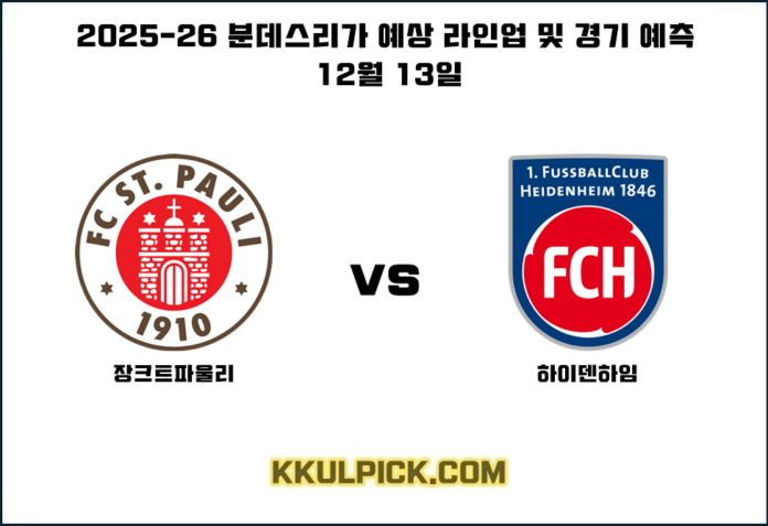 이 포스팅은 12월 13일 (한국시간)에 펼쳐지는 2025-26 분데스리가 FC 장크트파울리와 1. FC 하이덴하임 간의 맞대결 경기를 분석하는 내용을 포함하고 있습니다.