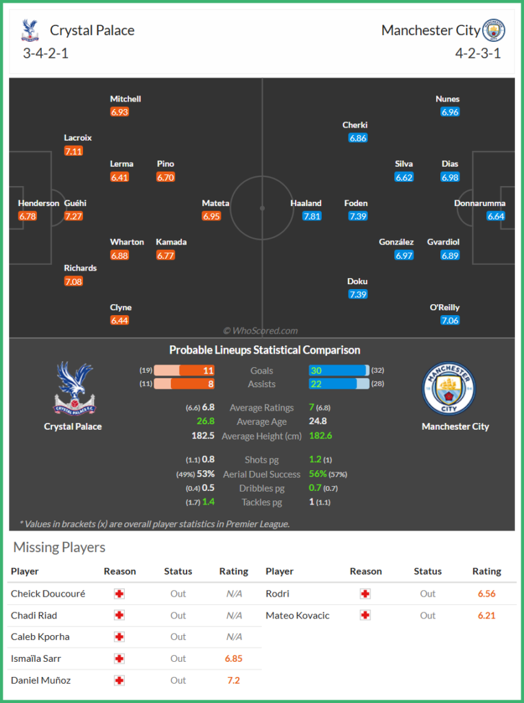 - 예상 스코어 : [크리스탈 팰리스 1 – 3 맨체스터 시티]