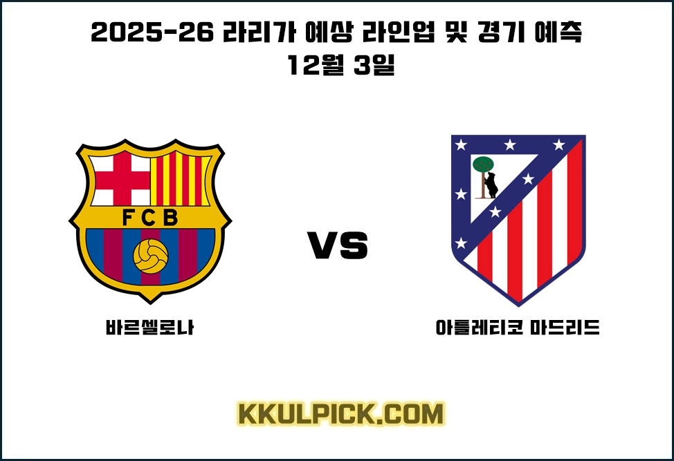 이 포스팅은 12월 3일 (한국시간)에 펼쳐지는 2025-26 라리가 15라운드 FC 바르셀로나와 아틀레티코 마드리드 간의 맞대결 경기를 분석하는 내용을 포함하고 있습니다.