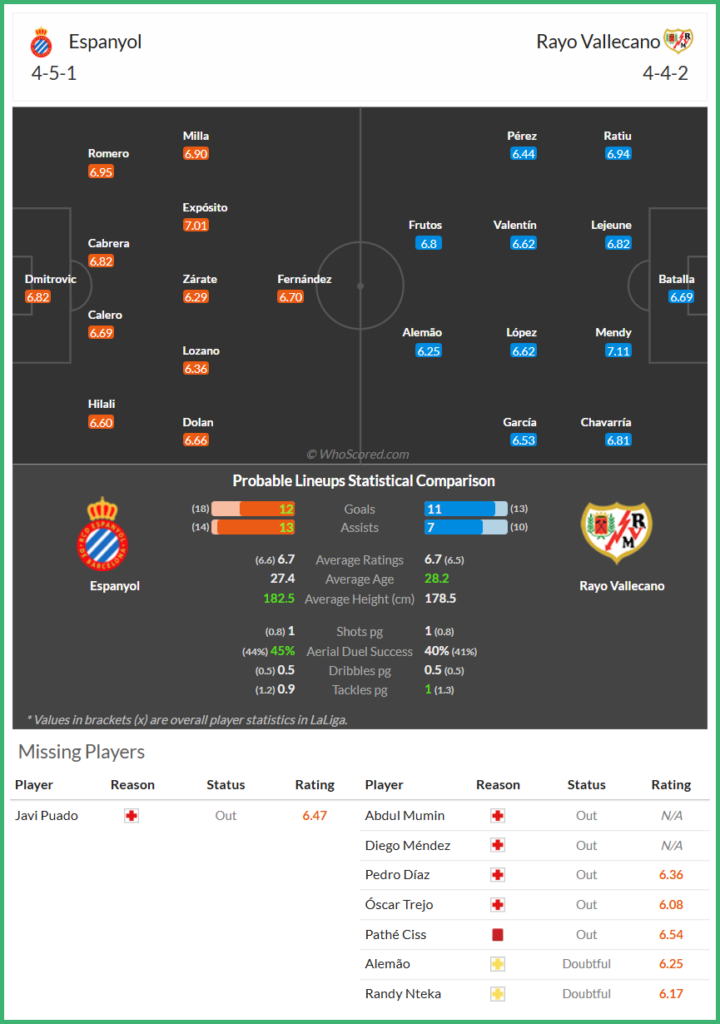 - 예상 스코어 : [에스파뇰 1 – 1 라요 바예카노]