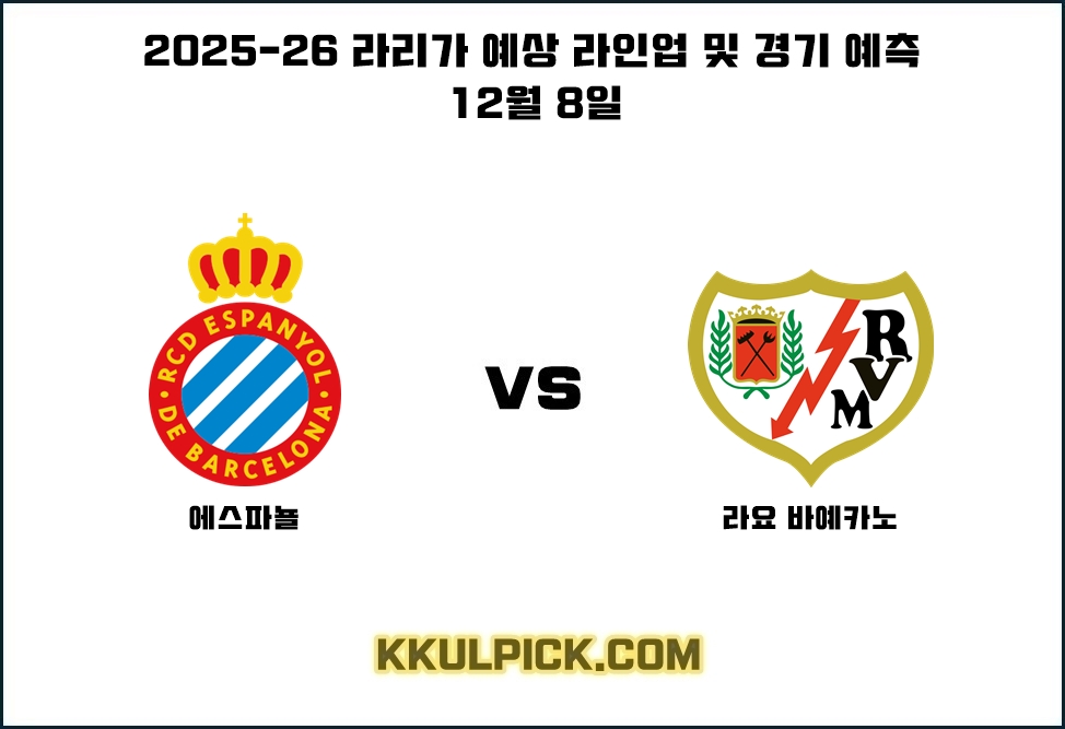 이 포스팅은 12월 8일(한국시간)에 펼쳐지는 2025-26 라리가 RCD 에스파뇰과 라요 바예카노 간의 맞대결 경기를 분석하는 내용을 포함하고 있습니다.