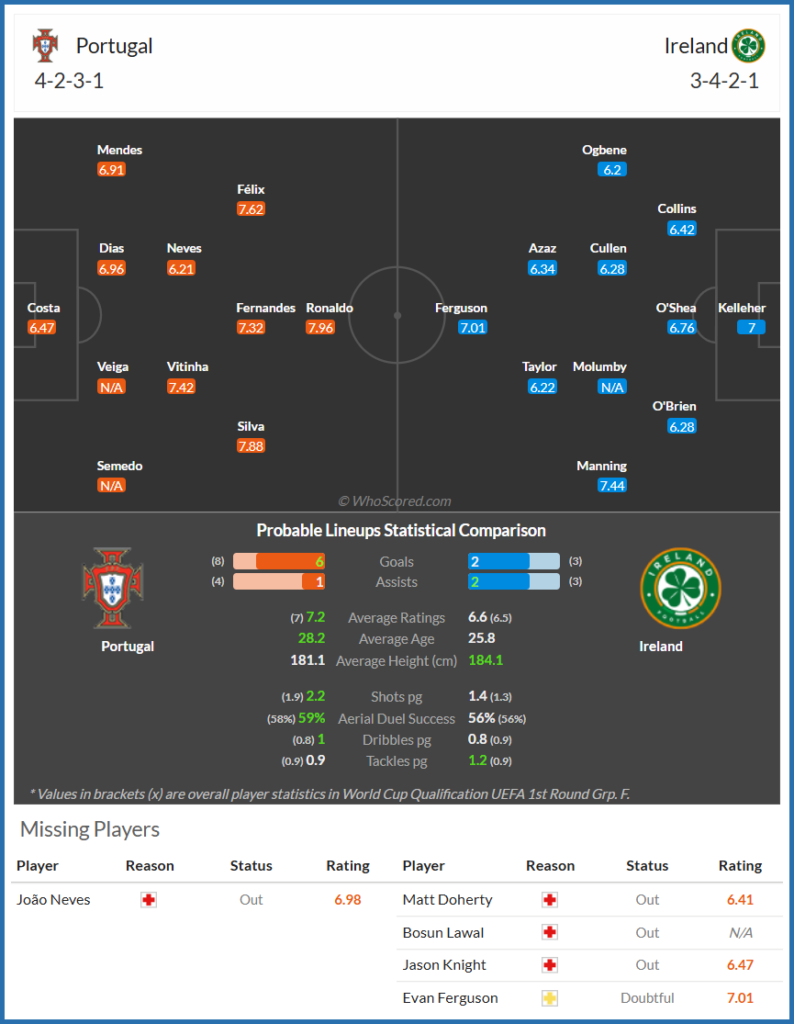 포르투갈 국가대표팀 | 아일랜드 국가대표팀 | |